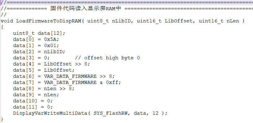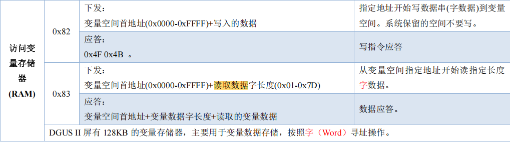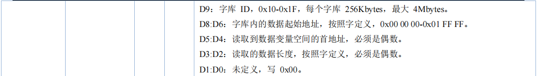 這樣用一條指令,就可以把bin文件讀取到迪文屏變量空間RAM中,57344個(gè)U16類型數(shù)據(jù)就是112K,所以bin文件最大是112K,比較好操作,雖然每個(gè)字庫(kù)文件是256kbytes,bin文件可以到256kbytes,就需要多次進(jìn)行讀。