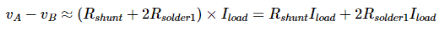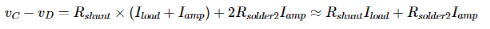 請(qǐng)注意,電流Iload無(wú)需通過(guò)Rsolder2即可返回其源。測(cè)得的電壓為: