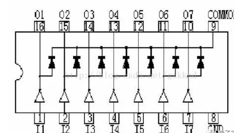 左圖1~7是信號輸入(IN),10~16是輸出信號(OUT),8和9是集成電路電源。