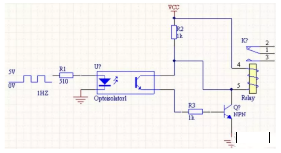 當(dāng)晶體管T1基極被輸入低電平時,晶體管截止,繼電器線圈斷電,觸點(diǎn)RL1斷開。