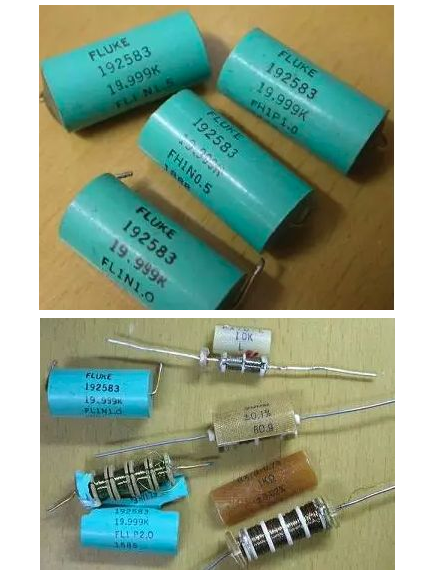 ⑥ 低TC(溫度系數(shù))線繞電阻:常見于老式國外(比如Fluke)各種精密儀器中,采用鎳鉻電阻合金,溫度系數(shù)非常低,一般在1ppm/℃到5ppm/℃之間,有的電阻每一只都標明了實測溫度系數(shù)。老化也不大,基本在20ppm/年之內(nèi),二手價格大約10元/只。這樣的電阻進行標定后,可以作為一般標準電阻來用。