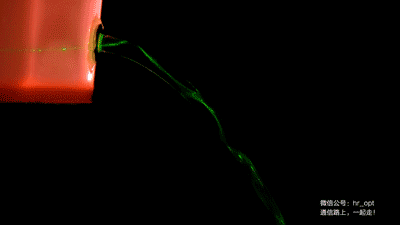 1841年,Daniel Colladon和Jacques Babinet,這兩位科學(xué)家演示了一個(gè)實(shí)驗(yàn):在裝滿水的木桶上鉆個(gè)孔,然后將光照入水流中,光居然被彎彎曲曲的水俘獲了:光沿著水桶流出的細(xì)流傳輸,順著彎曲的水流前進(jìn)。