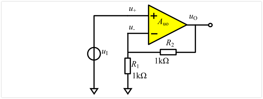下面就以下圖的電路為例子,看看為什么最終是u+ = u-的?