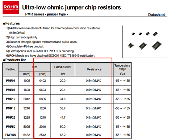 網(wǎng)上還有一種觀點(diǎn),認(rèn)為0Ω電阻的電流是根據(jù)功率算出來的,電阻按照50mΩ來算。這樣的話,0805的電阻功率一般為1/8W,算出額定電流應(yīng)該是1.58A。但是,我查看規(guī)格書發(fā)現(xiàn),羅姆、國巨、光頡這幾大品牌的都是2A,與計(jì)算出來的有些出入。
