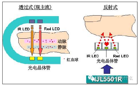光電式:一束光打在皮膚上,測(cè)量反射/透射的光。因?yàn)檠簩?duì)特定波長(zhǎng)的光有吸收作用,每次心臟泵血時(shí)都會(huì)該波長(zhǎng)都會(huì)被大量吸收,以此就可以確定心跳。缺點(diǎn):耗電大,會(huì)因環(huán)境光干擾。