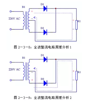 全波整流電路每個整流二極管上流過的電流只是負(fù)載電流的一半,比半波整流小一倍。