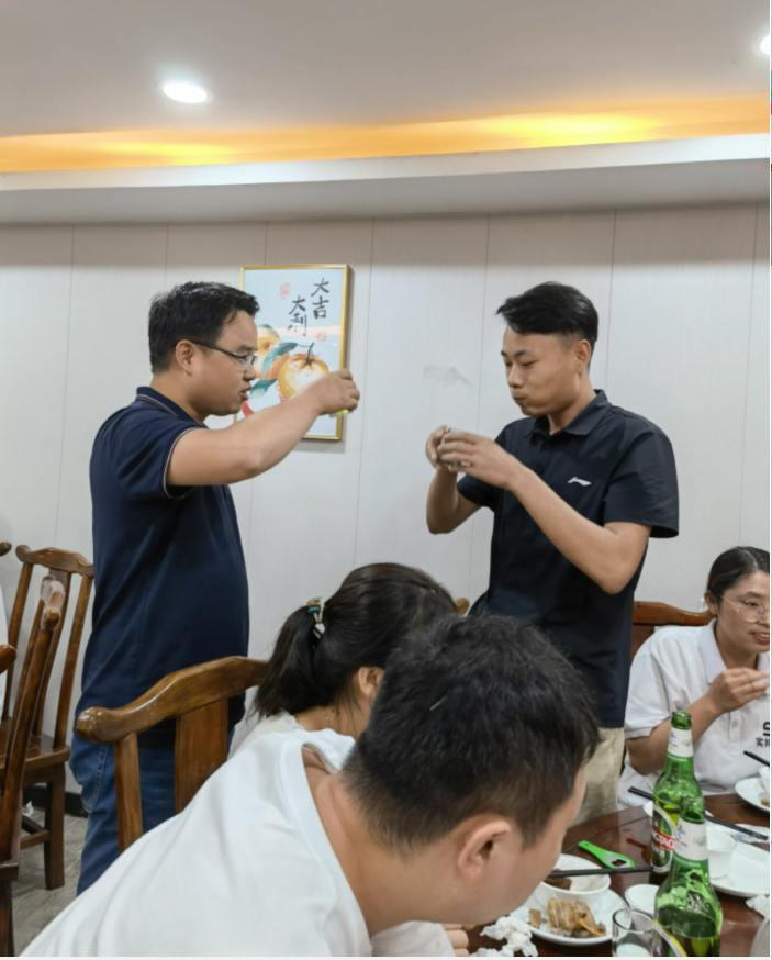為了感謝領(lǐng)導(dǎo)關(guān)懷,我們向領(lǐng)導(dǎo)敬上了滿懷深情的佳釀,同時也祝賀瞿工和楊工新婚快樂,在一片歡聲笑語中,在一陣陣熱鬧聲中聚餐活動落下了帷幕。