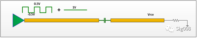 我們經(jīng)常見到信號中串有耦合電容,如下結(jié)構(gòu)。