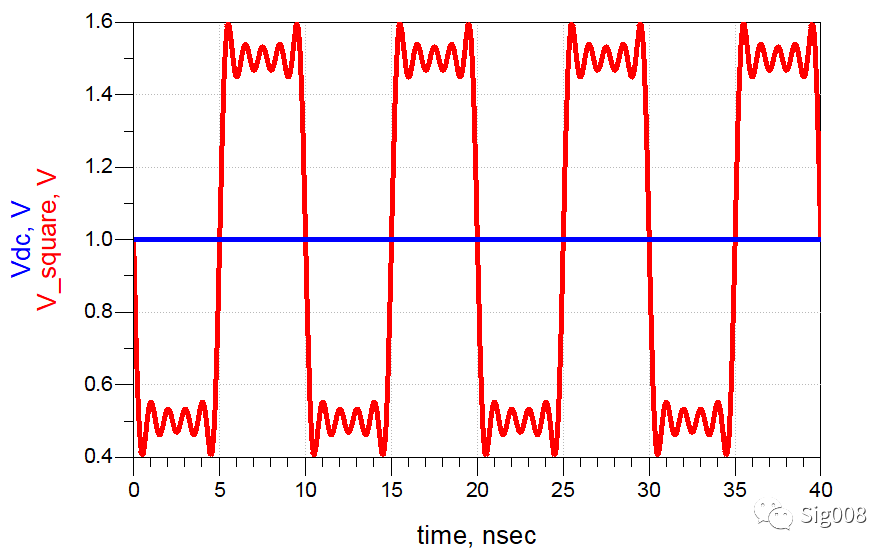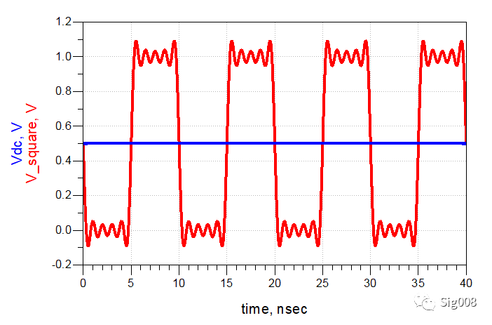 此時(shí)1V擺幅的波形中含有1V的直流分量;