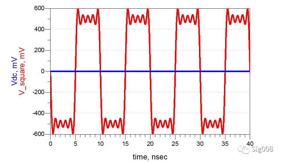 對于一個(gè)沒有AC耦合電容的100MHz信號波形如下: