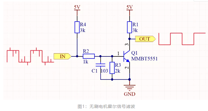 ?如圖1是無(wú)刷電機(jī)霍爾信號(hào)的濾波電路,為了保證波形質(zhì)量,簡(jiǎn)單的阻容濾波并不能完全解決實(shí)際復(fù)雜的工作環(huán)境所帶來(lái)的波形異常,量產(chǎn)的無(wú)刷驅(qū)動(dòng)模塊也有該電路。