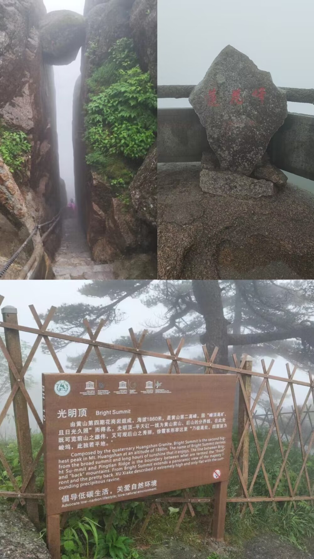 躲雨約莫30分鐘左右雨勢(shì)漸小,在導(dǎo)游的帶領(lǐng)下我們途經(jīng)蓮花峰,達(dá)到天海爬上一線天向著光明頂走去。