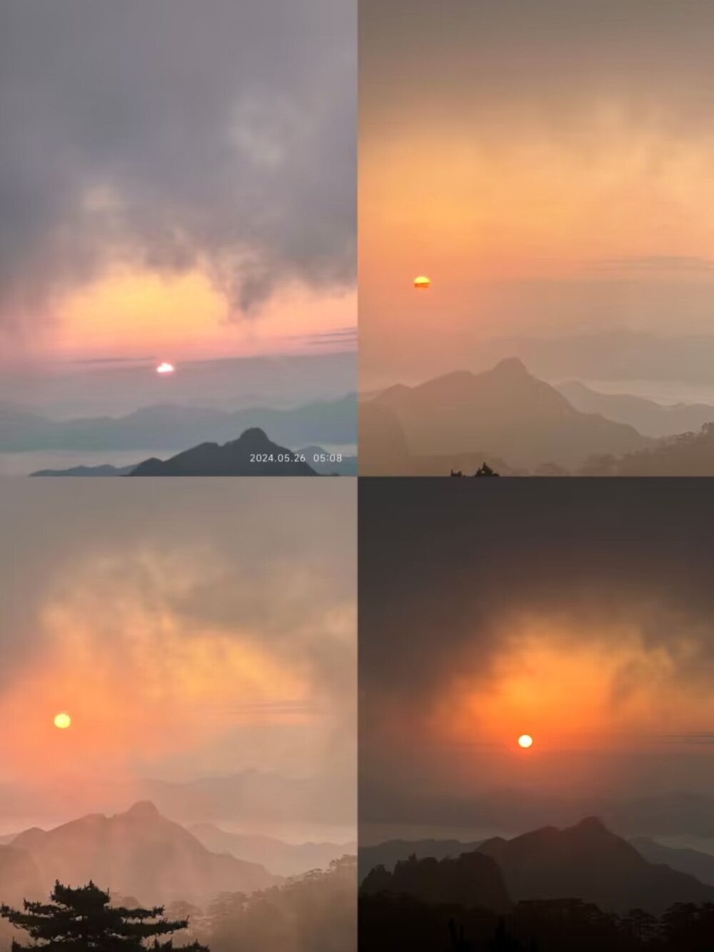 預(yù)報(bào)說(shuō)第二天日出時(shí)間是在5時(shí)09分,由于前一天的大雨本以為26號(hào)的日出是無(wú)緣得見,但是我們的運(yùn)氣是極好的,出門時(shí)看到的是無(wú)盡霧氣和凍人的大風(fēng),沒(méi)想到下一刻太陽(yáng)露出一絲光亮,橙色的晨光一下闖入眼簾,撥開云霧,現(xiàn)場(chǎng)一片歡呼聲。
