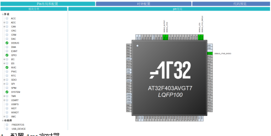 接下來就是配置相應(yīng)的功能,和STM32圖形工具差不多,多了一個代碼預(yù)覽,配置完成后,可以先看看都生成了哪些文件,以及代碼內(nèi)容。