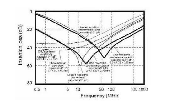 從上面電容的濾波曲線上我們還看出并不是平坦的,它像一個’V’,也就是說有選頻特性,在時候我們希望它是越平越好(前級的板級濾波),而有時候希望它越越尖越好(濾波或陷波)。