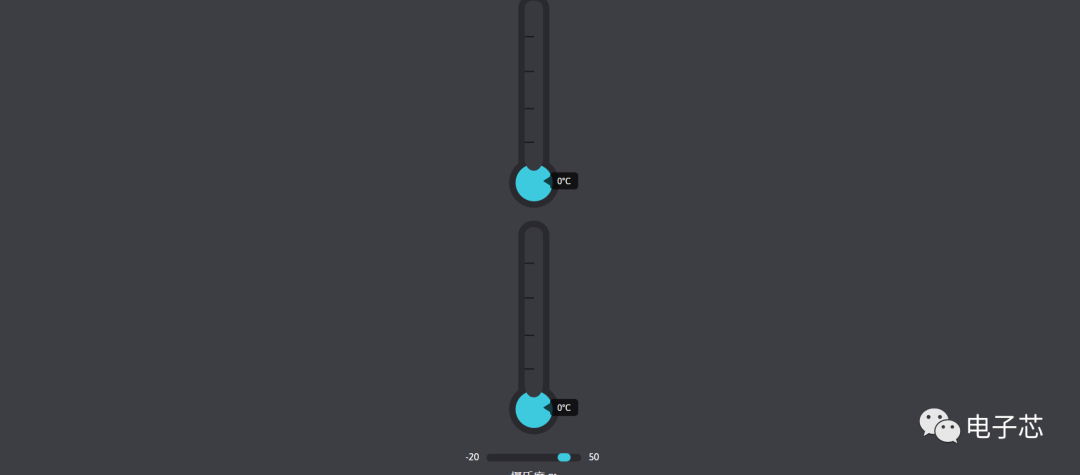 查閱資料,在原本的代碼外圍增加div,并且設(shè)置style="float:left;width:200px;",其中float:left;是讓第一個溫度計(jì)居左,width:200px;是這是溫度計(jì)的寬度,否則兩個溫度計(jì)會挨的特別近。