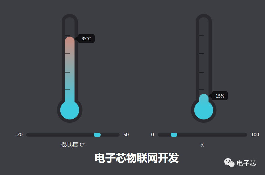 在制作教程的時候,為了顯示出濕度,將溫度計(jì)的網(wǎng)頁界面進(jìn)行復(fù)制,改成濕度計(jì)。在簡單的復(fù)制中發(fā)現(xiàn)一些問題。如下是上次制作的溫度監(jiān)控界面,本次復(fù)制一個溫度計(jì)作為濕度計(jì)。
