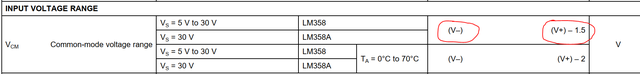 LM358 數據手冊中的共模電壓范圍顯示,其輸出的最大電壓為正電源電壓減去 1.5: