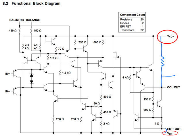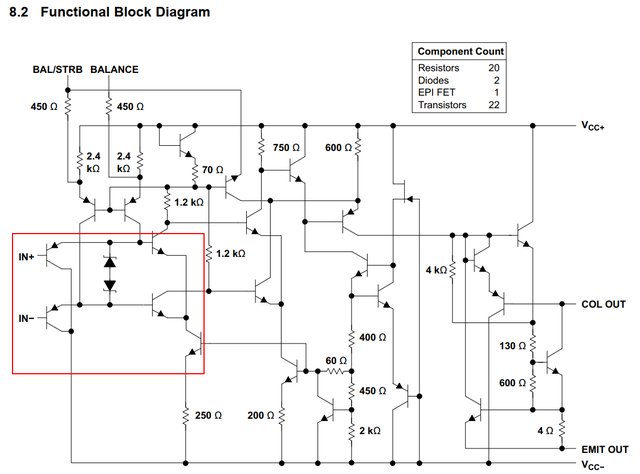 下面是運放芯片 LM358 內部電路的差分輸入級(Input Stage):