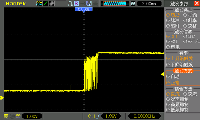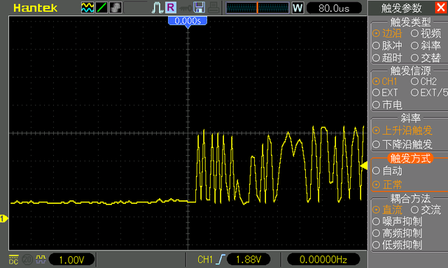 可以看到 LED 由亮到滅時波形有很多毛刺(或者振蕩)。