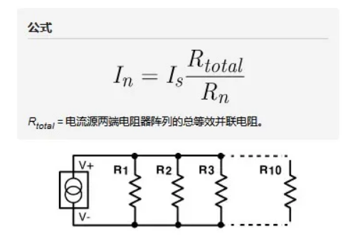 計(jì)算連接到電流源的多至 10 個(gè)并聯(lián)電阻上流過(guò)的電流: